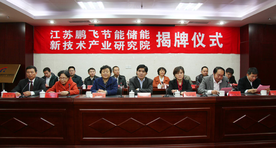 2014年11月29日上午10時,江蘇鵬飛節(jié)能儲能新技術(shù)產(chǎn)業(yè)研究院正式揭牌成立。縣政協(xié)主席朱春、中國建材機(jī)械工業(yè)協(xié)會常務(wù)副會長王玉敏、江蘇省建材行業(yè)協(xié)會會長聶長蘭,中科院、南京工業(yè)大學(xué)、上海交大、安徽理工、鹽城工專等高校院所的專家教授,縣科技局、人社局等相關(guān)部門負(fù)責(zé)人及部分客商,150多名代表參加了揭牌儀式。副縣長盧忠平主持了揭牌儀式。